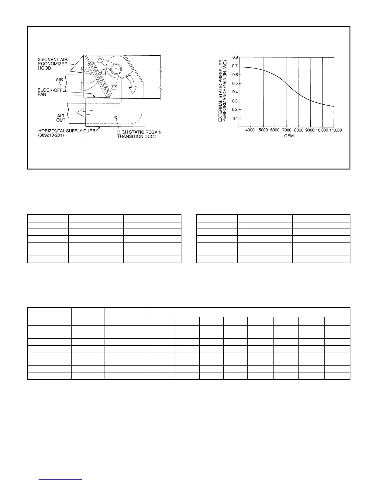 creasing external static pressure by amount shown above.