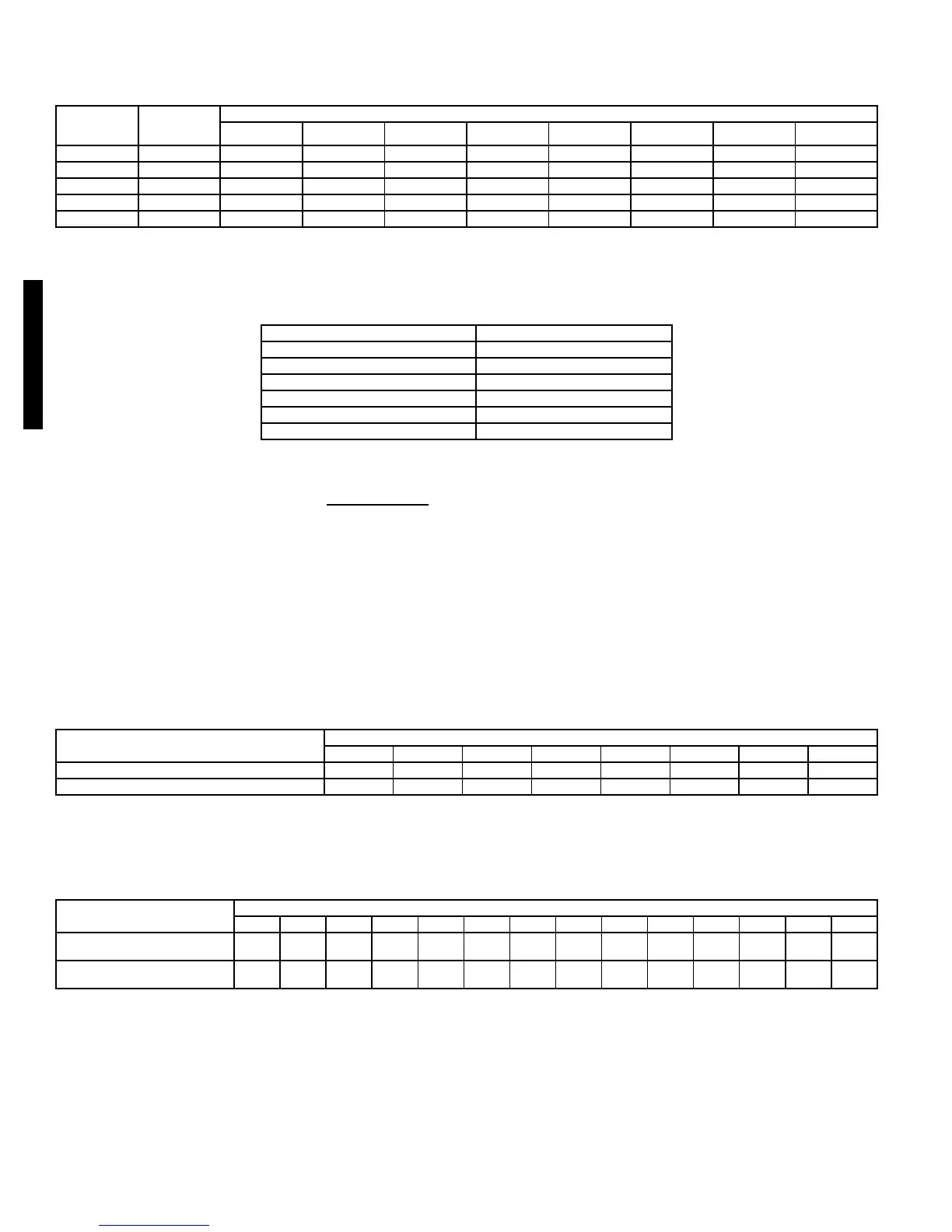 Performance tables to determine indoor blower rpm and watts.