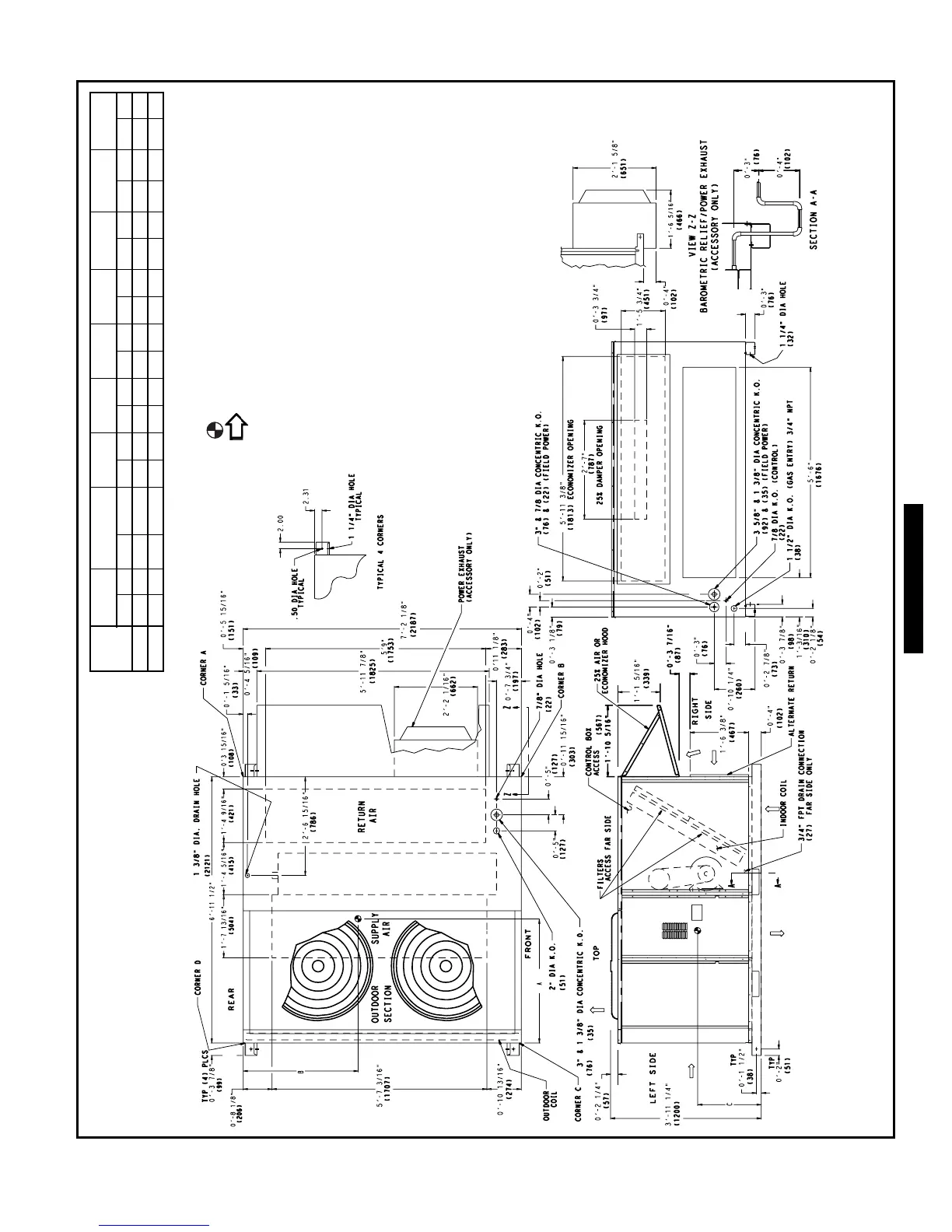 • Left side: 4′ -0″ (1219) for proper condenser coil airflow.