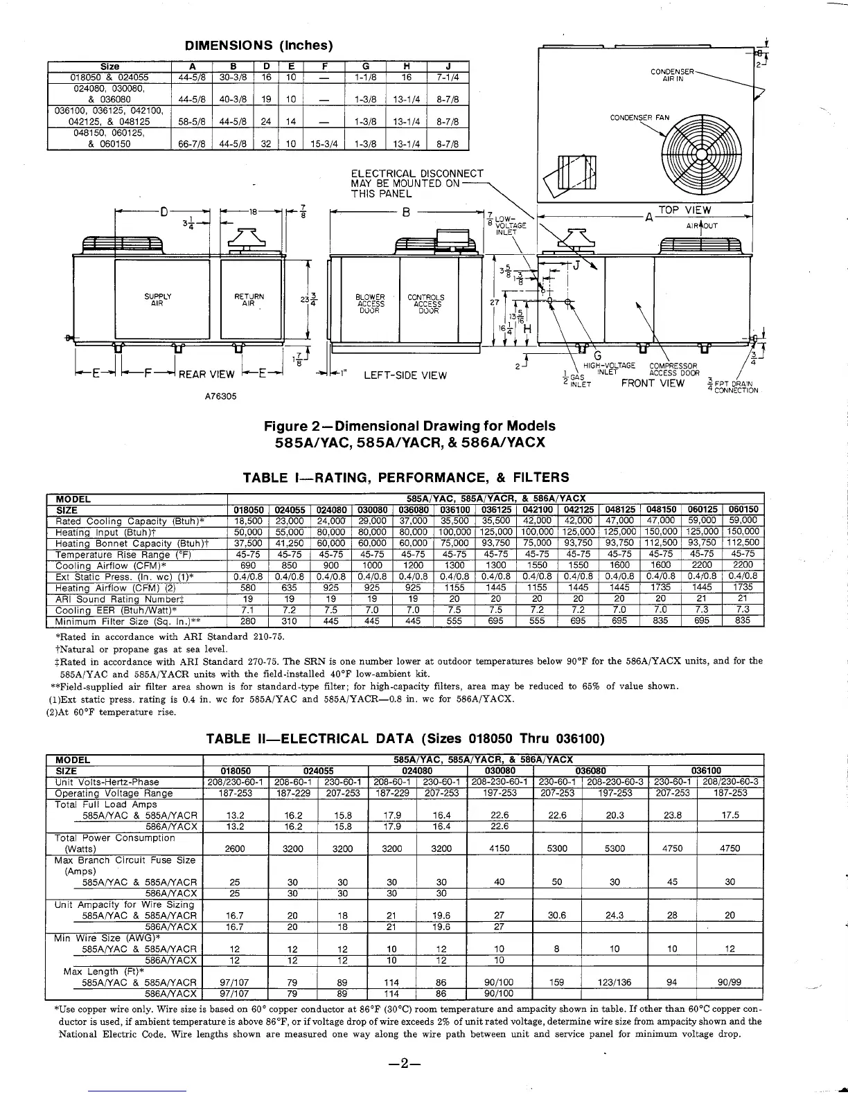 Bryant 585A/YAC - Dimensions; Rating, Performance & Filters; Electrical Data