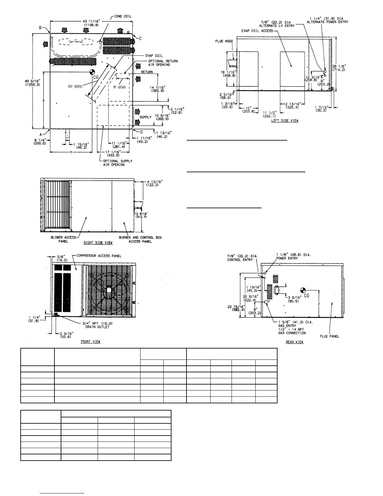 1. Clearances must be maintained to prevent recirculation of air from outdoor-