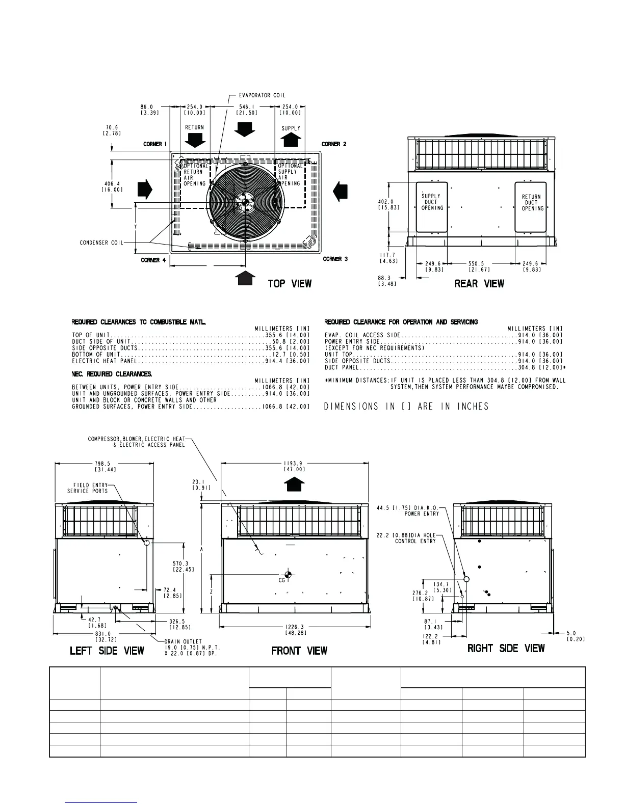 Fig. 2—601A030-042/602A030-036 Unit Dimensions