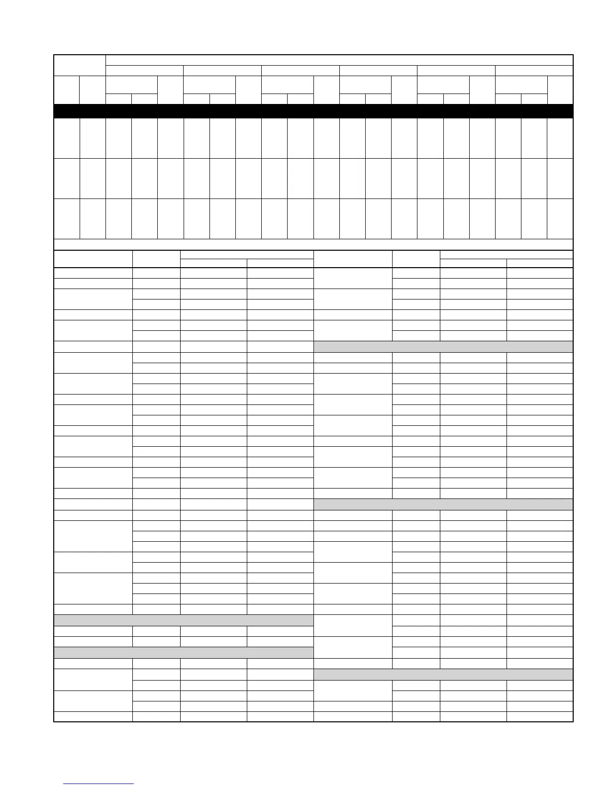 DETAILED COOLING CAPACITIES* Continued