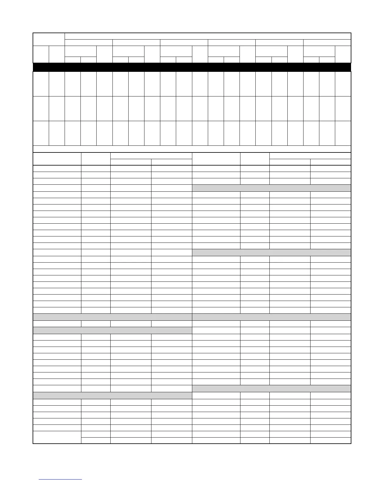 DETAILED COOLING CAPACITIES* Continued