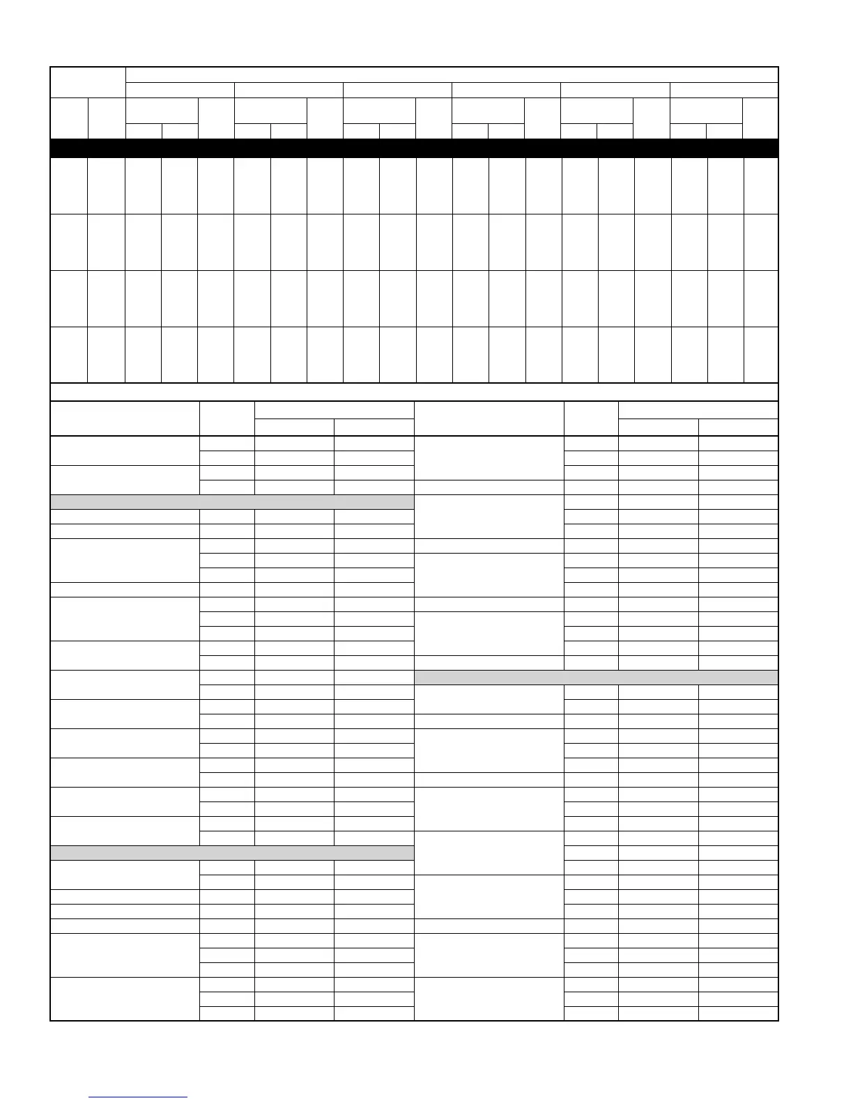 DETAILED COOLING CAPACITIES* continued