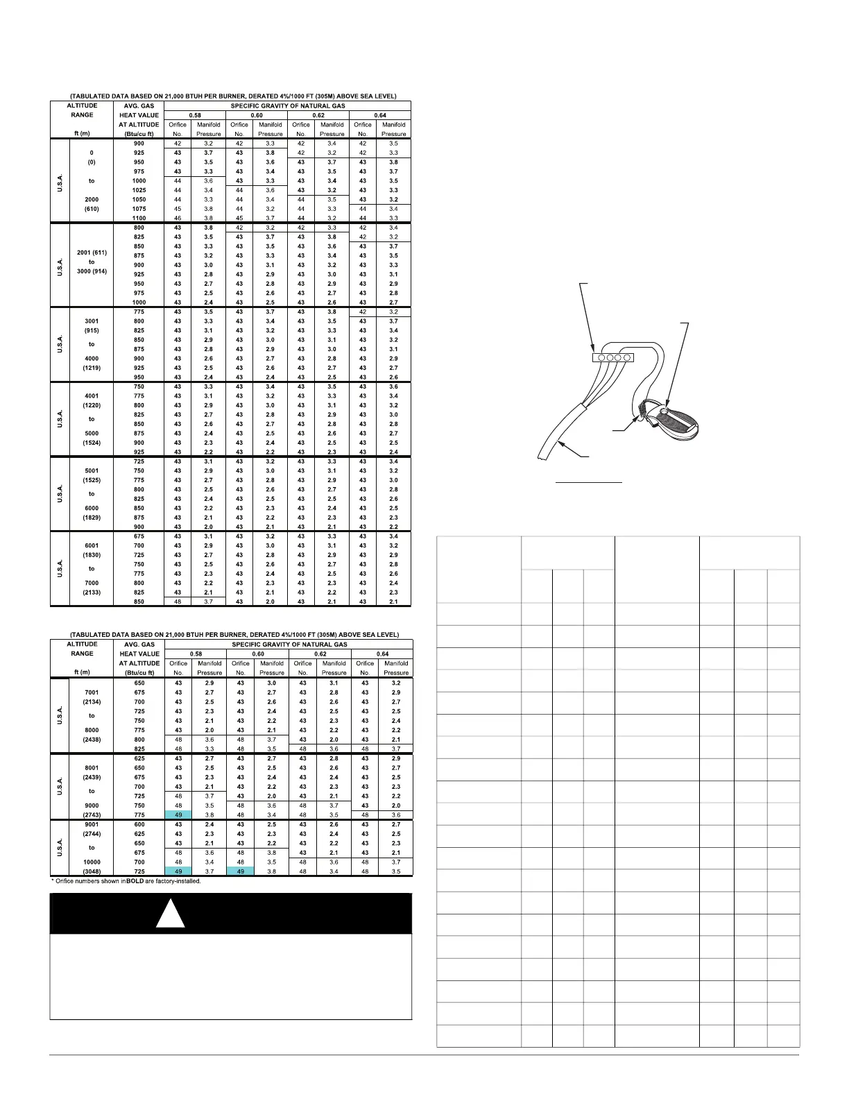 Table 12 – Orifice Size* And Manifold Pressure (In. W.C.) For Gas