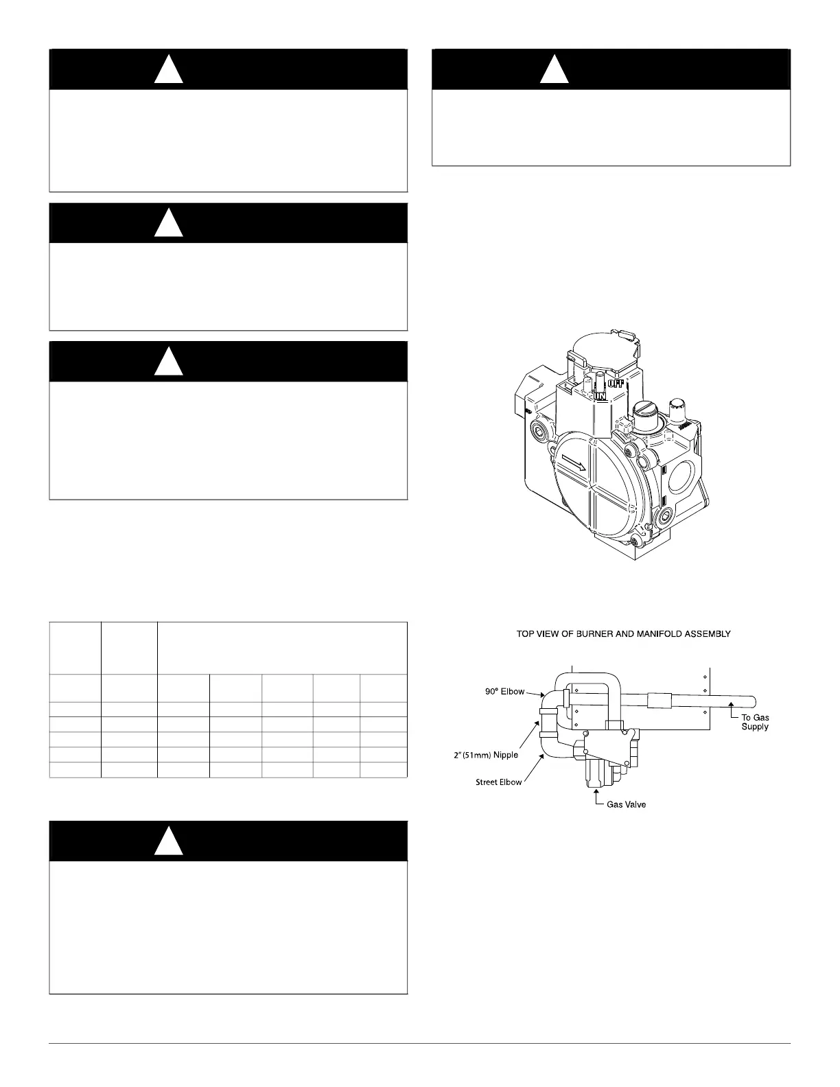 Refer to Table 5 for recommended gas pipe sizing. Risers must be used