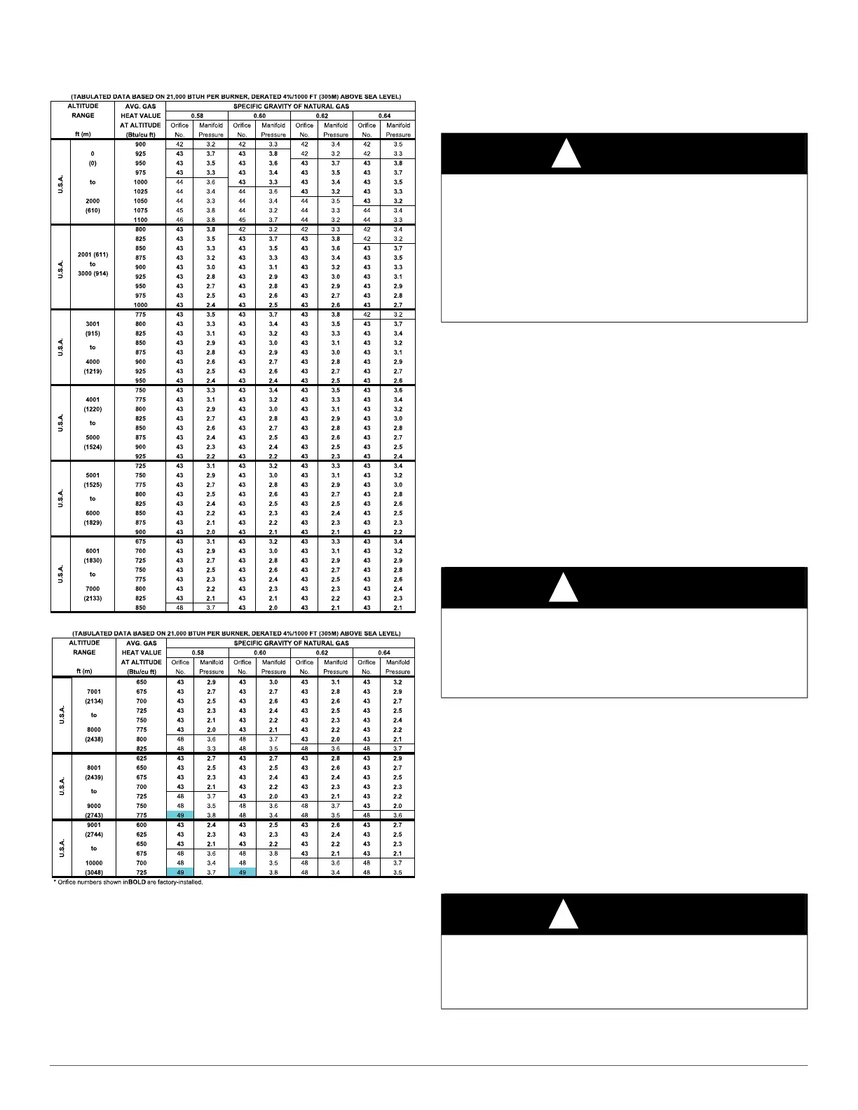 Table 17 – Orifice Size* And Manifold Pressure (in. w.c.) for Gas