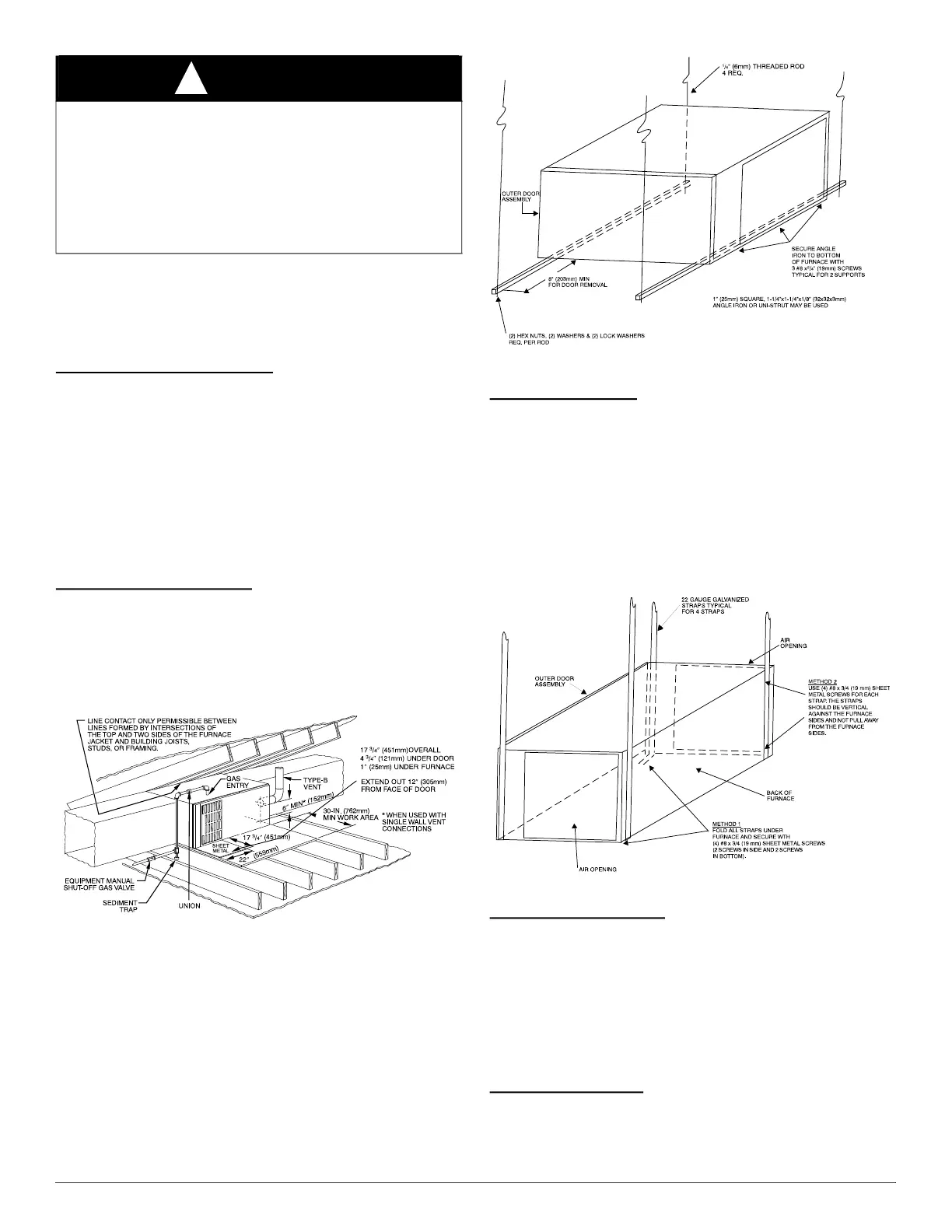 straps (plumber’s straps) may be used to suspend the furnace from each