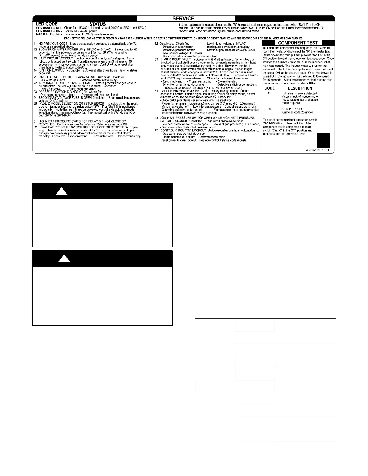 Failure to follow this caution may result in reduced furnace