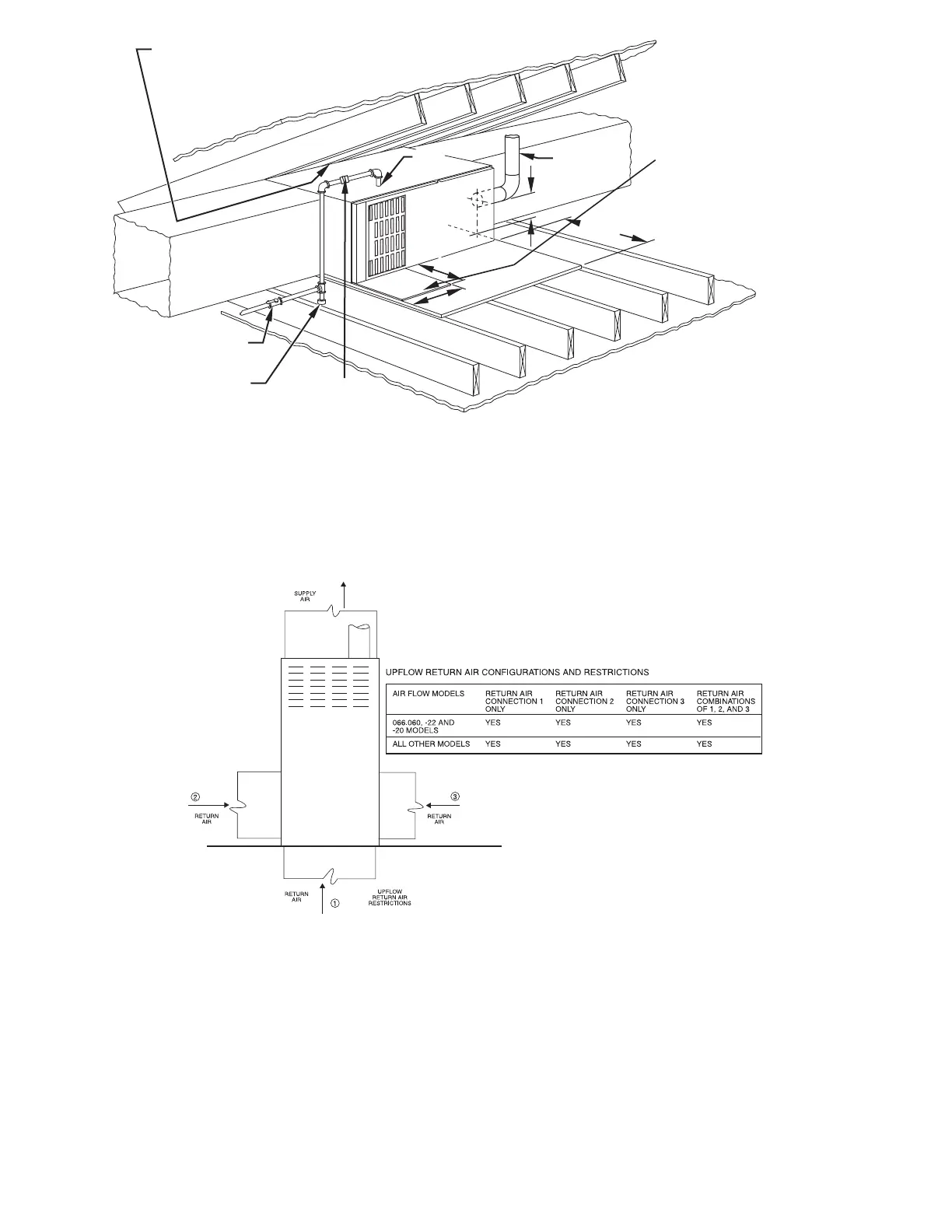 Fig. 18 -- Upflow Return Air Configurations and Restrictions