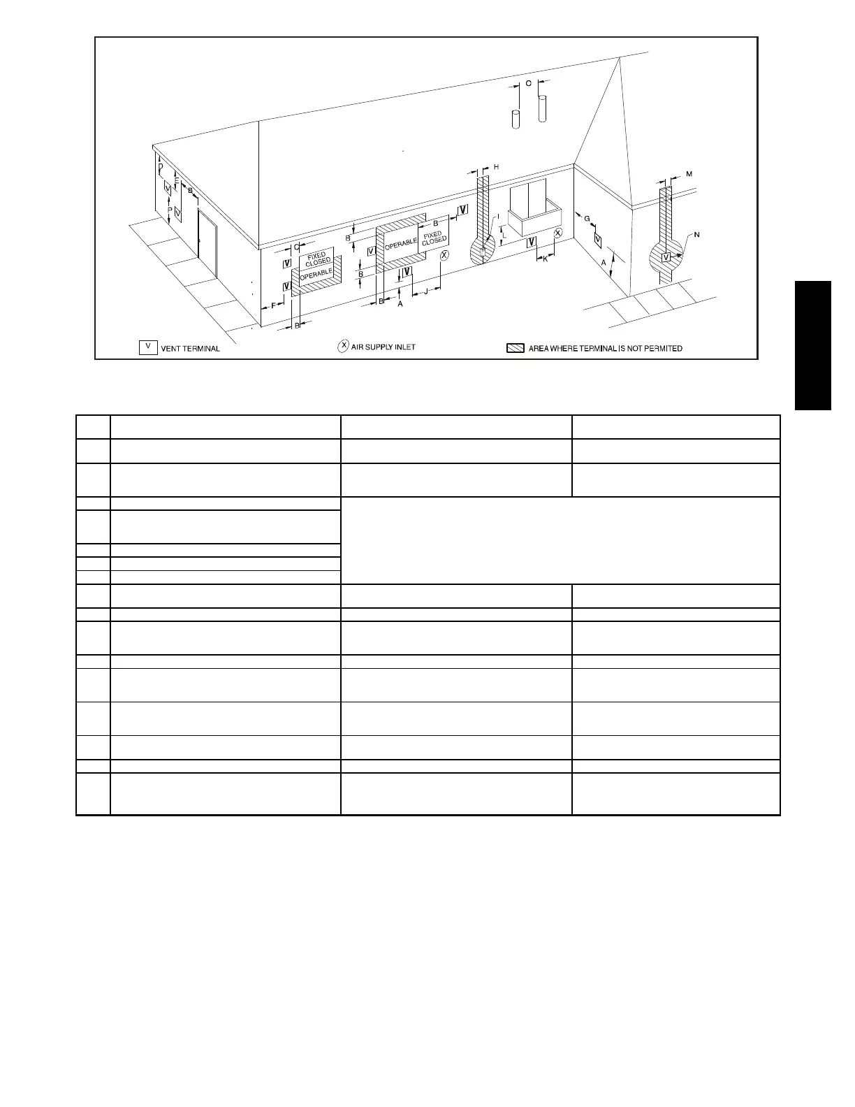 K Clearance to a mechanical air supply inlet 6 ft. (1.8 M) 3ft. (.9 M) above if within ‘0 ft. (3 M) horizontally
