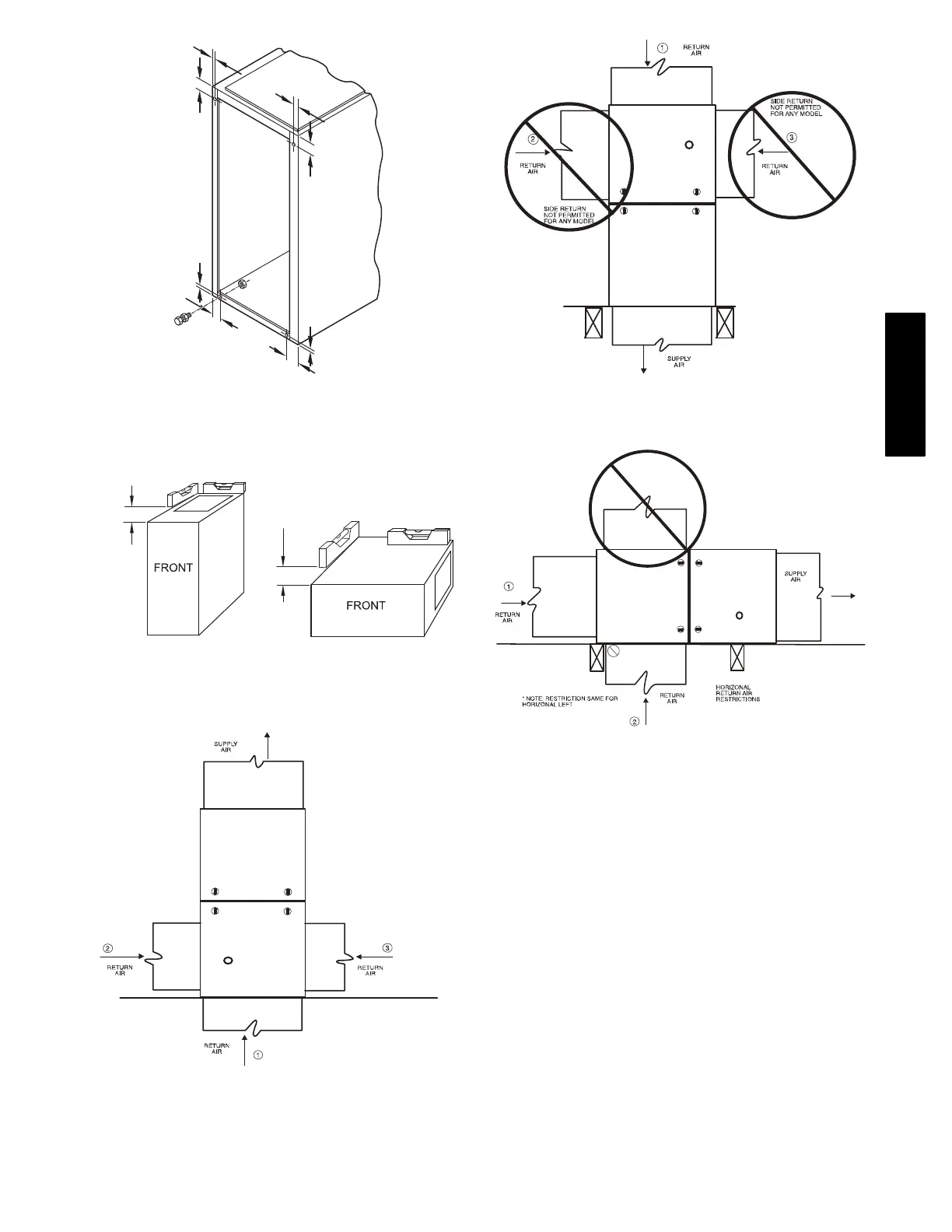 Fig. 27 − Upflow Return Air Configurations and Restrictions