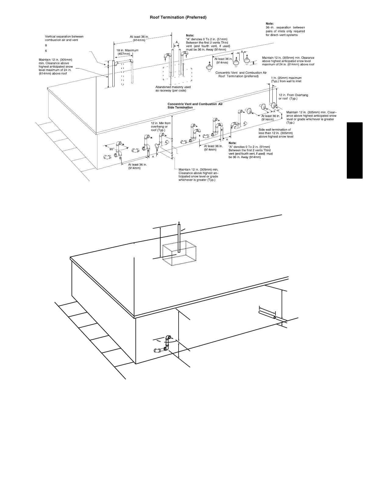 Fig. 53 − Combustion Air and Vent Pipe Termination for Direct Vent (2−Pipe) System