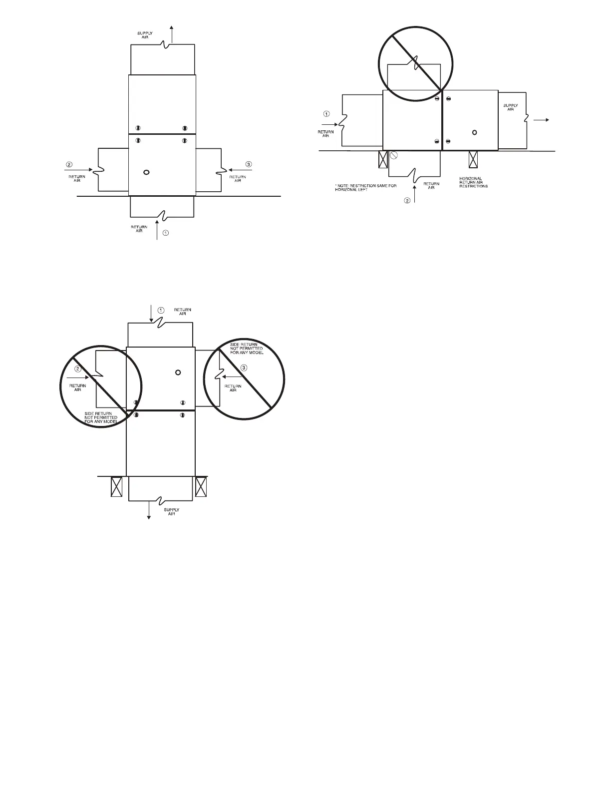 Fig. 22 -- Upflow Return Air Configurations and Restrictions