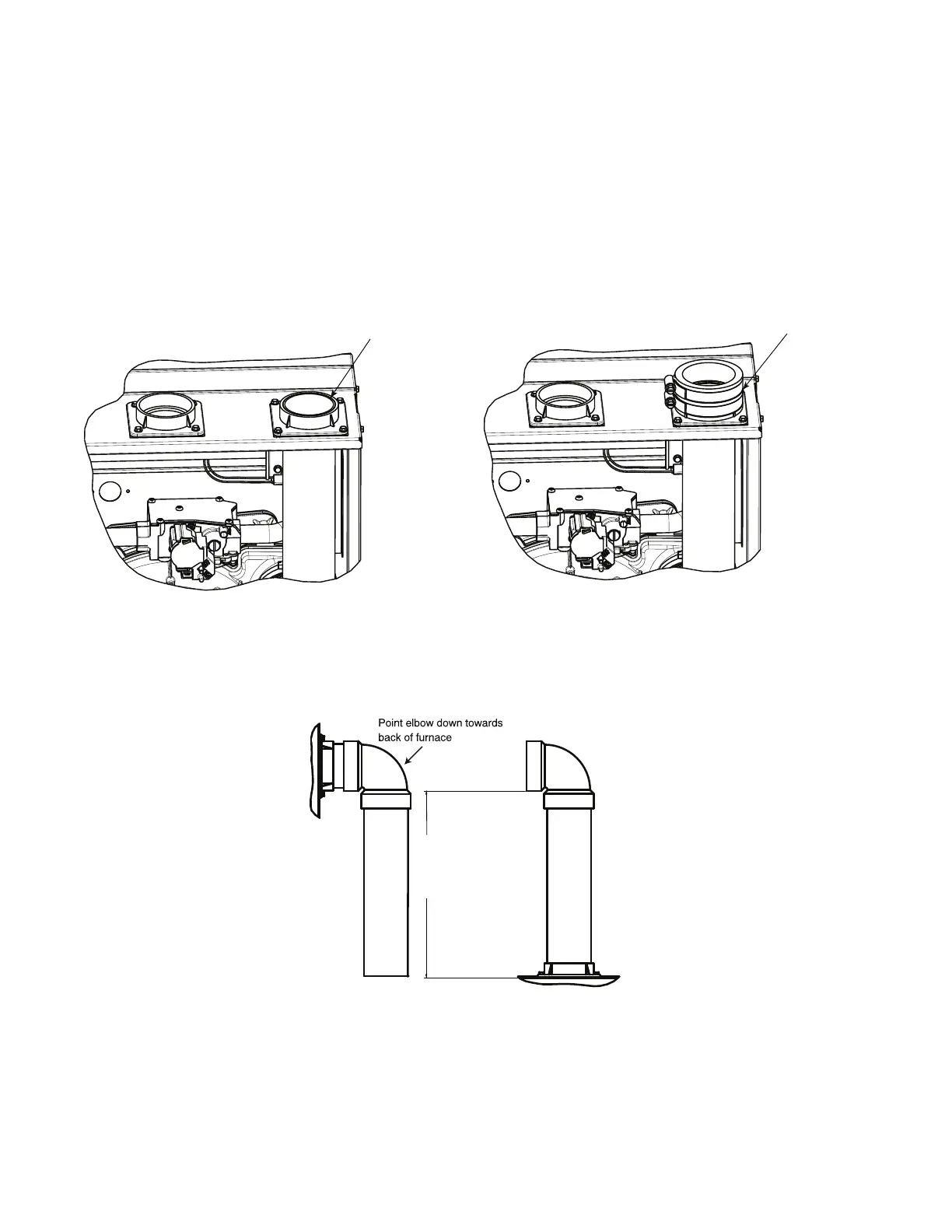 1. Attach vent pipe adapter with gasket to furnace casing.