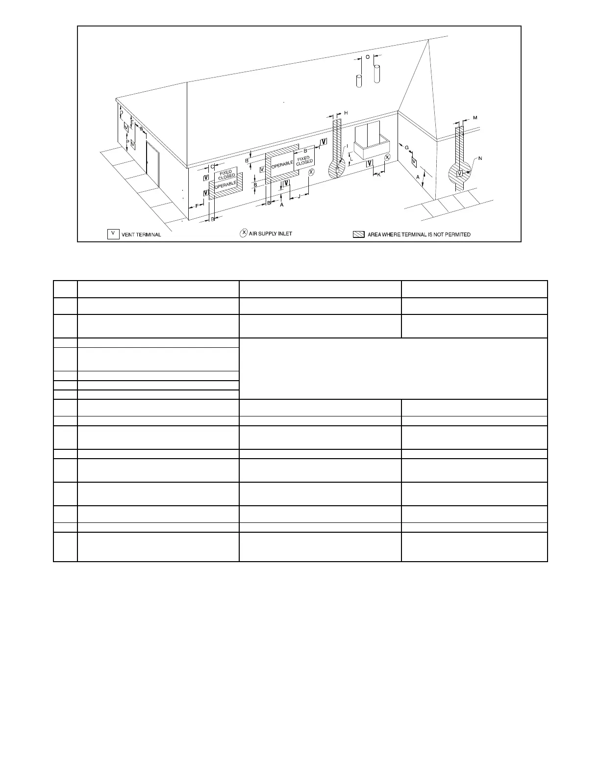 K Clearance to a mechanical air supply inlet 6 ft. (1.8 M) 3ft. (.9 M) above if within 10 ft. (3 M) horizontally