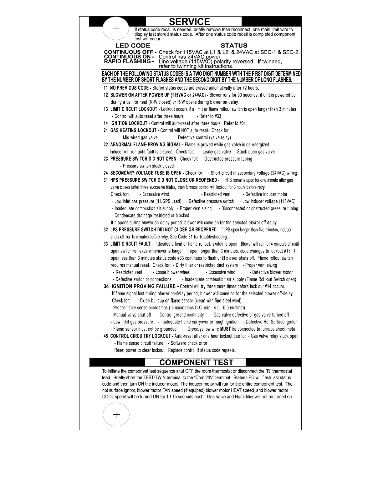 Bryant 915SB - Service; LED Code Status and Troubleshooting; Component Test Procedure