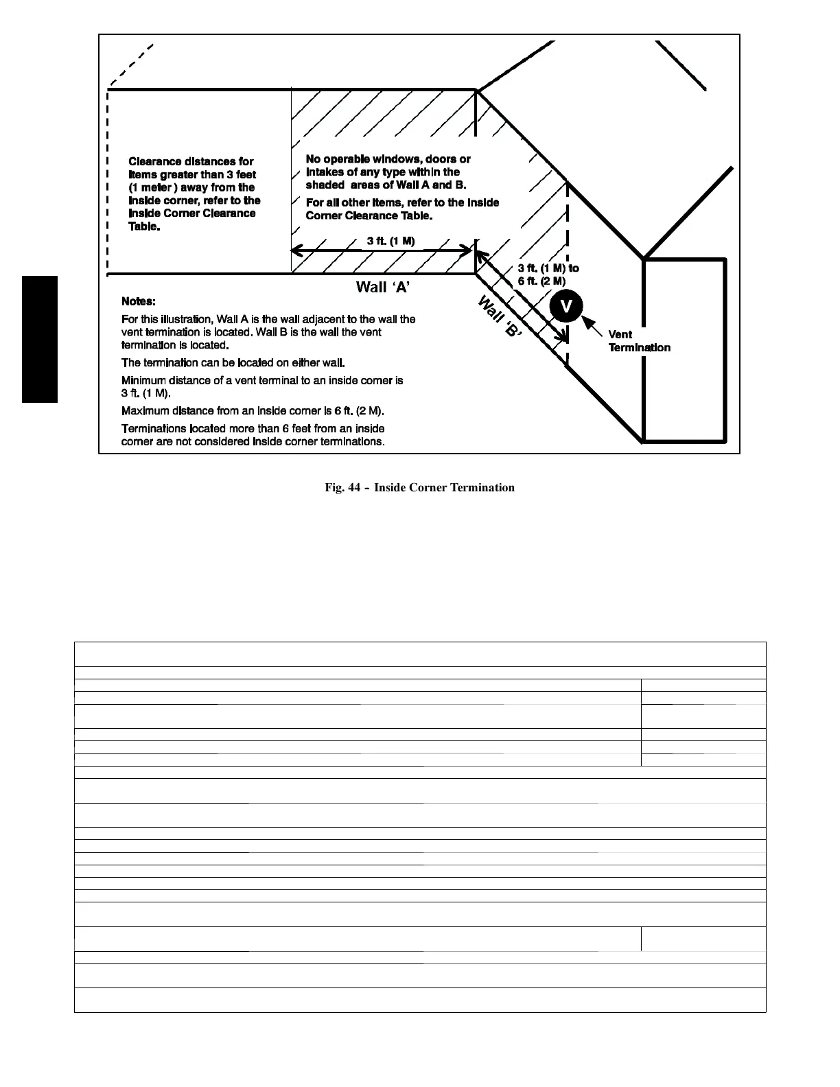 F or clearance distances from a vent termination to the outside corner of the wall, refer to the appropriate Direct Vent or Non --- Direct Vent Clearance