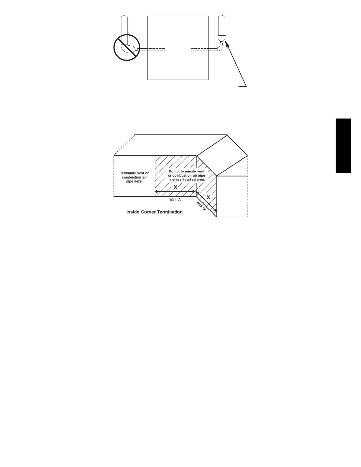 Fig. 41 -- Combustion Air and Vent Pipe Diameter Transition Location and Elbow Configuration