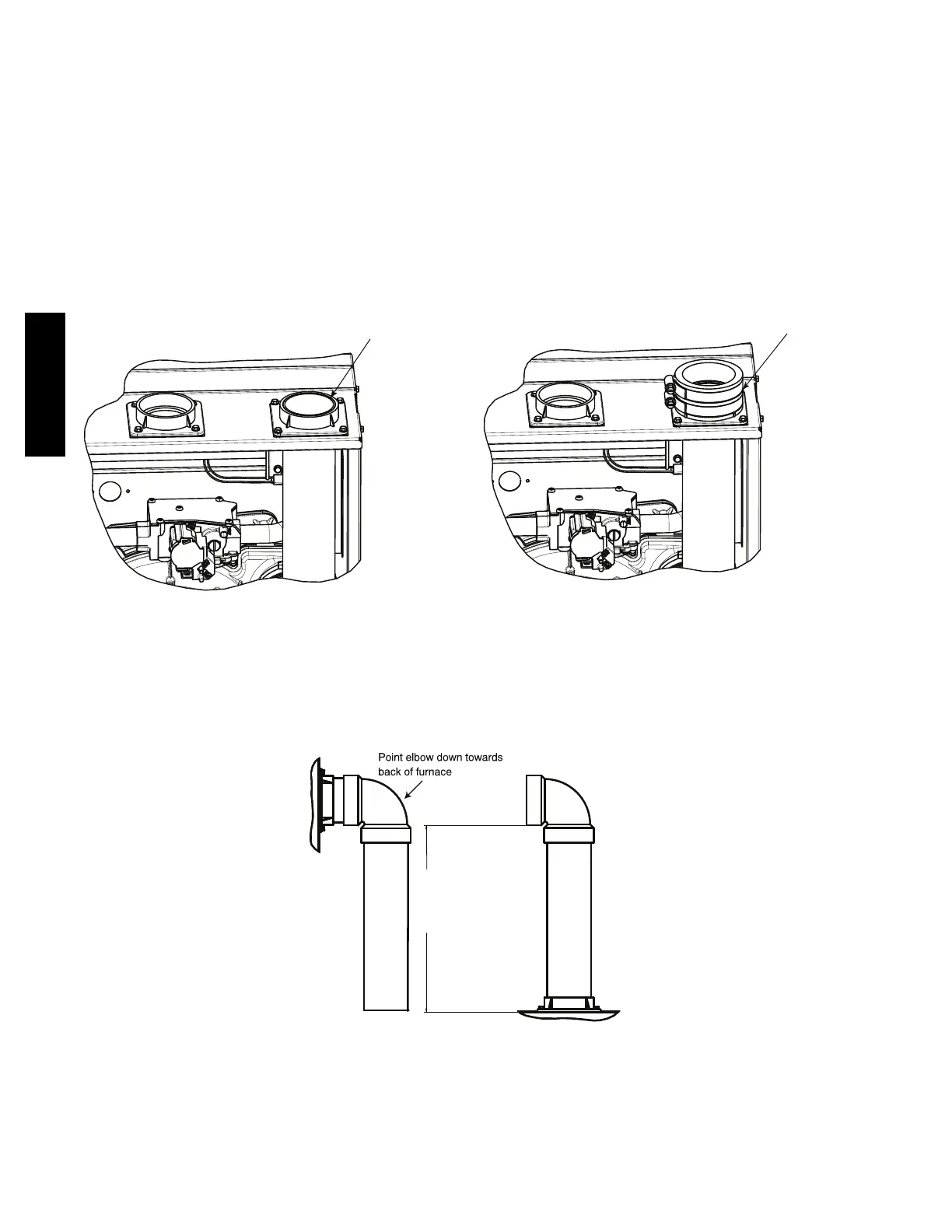 1. Attach vent pipe adapter with gasket to furnace casing.