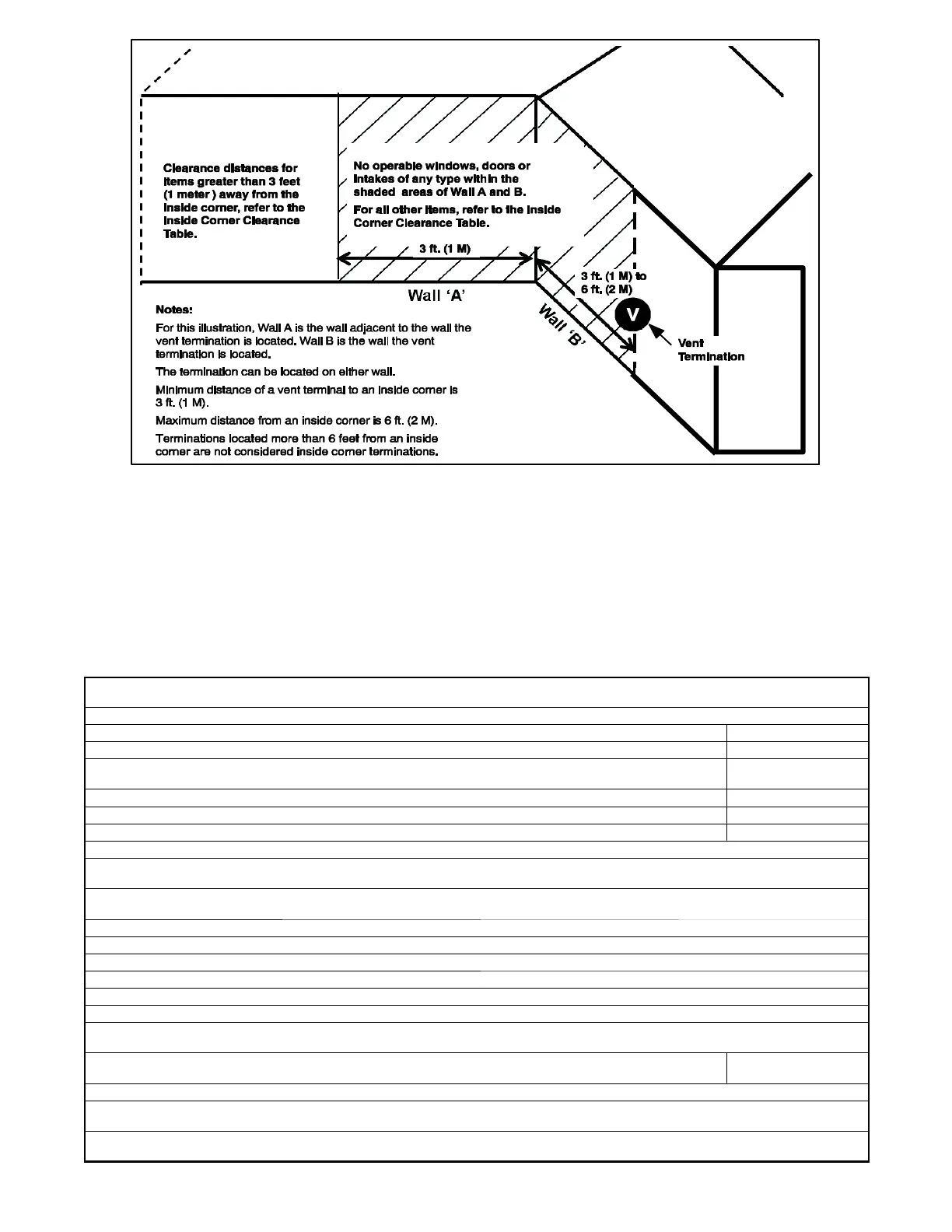 For clearance distances from a vent termination to the outside corner of the wall, refer to the appropriate Direct Vent or Non --- Direct Vent Clearance
