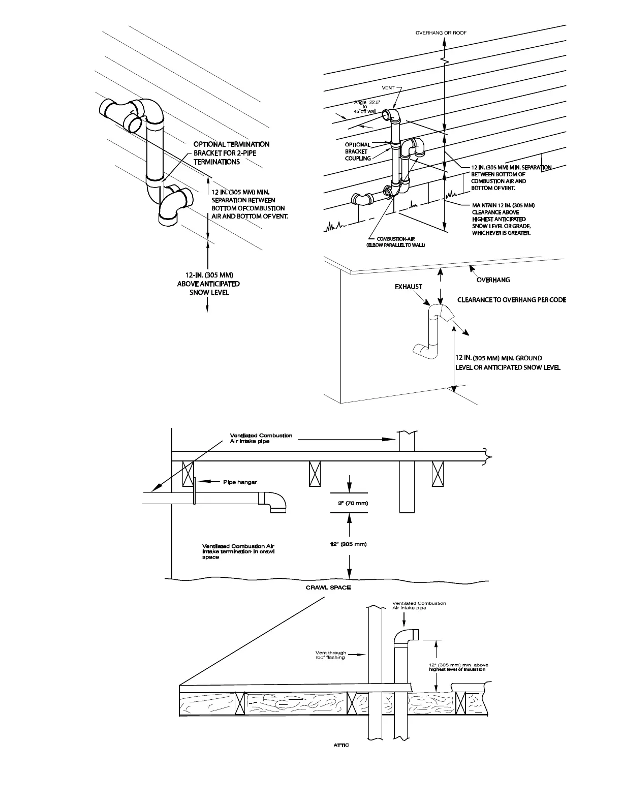 Fig. 59 -- Vent Terminations for Ventilated Combustion Air