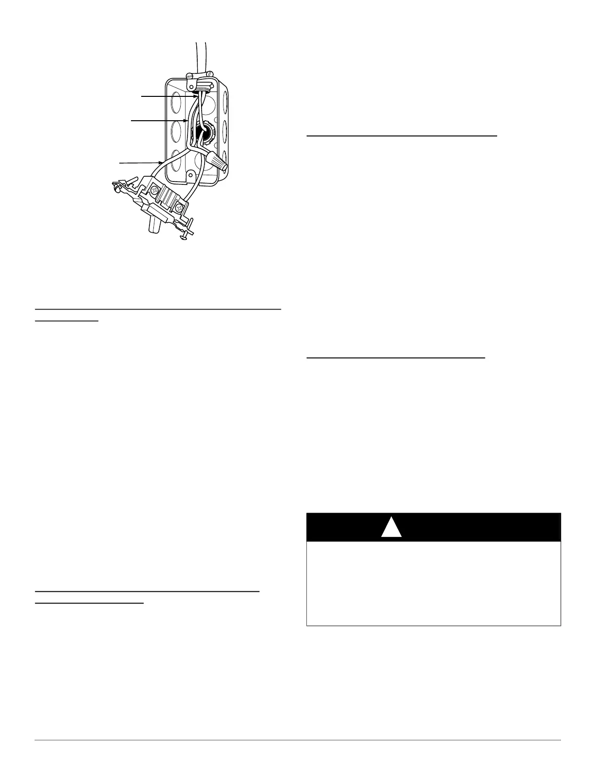 J-Box. If necessary, loosen power wires from strain—relief wire-tie