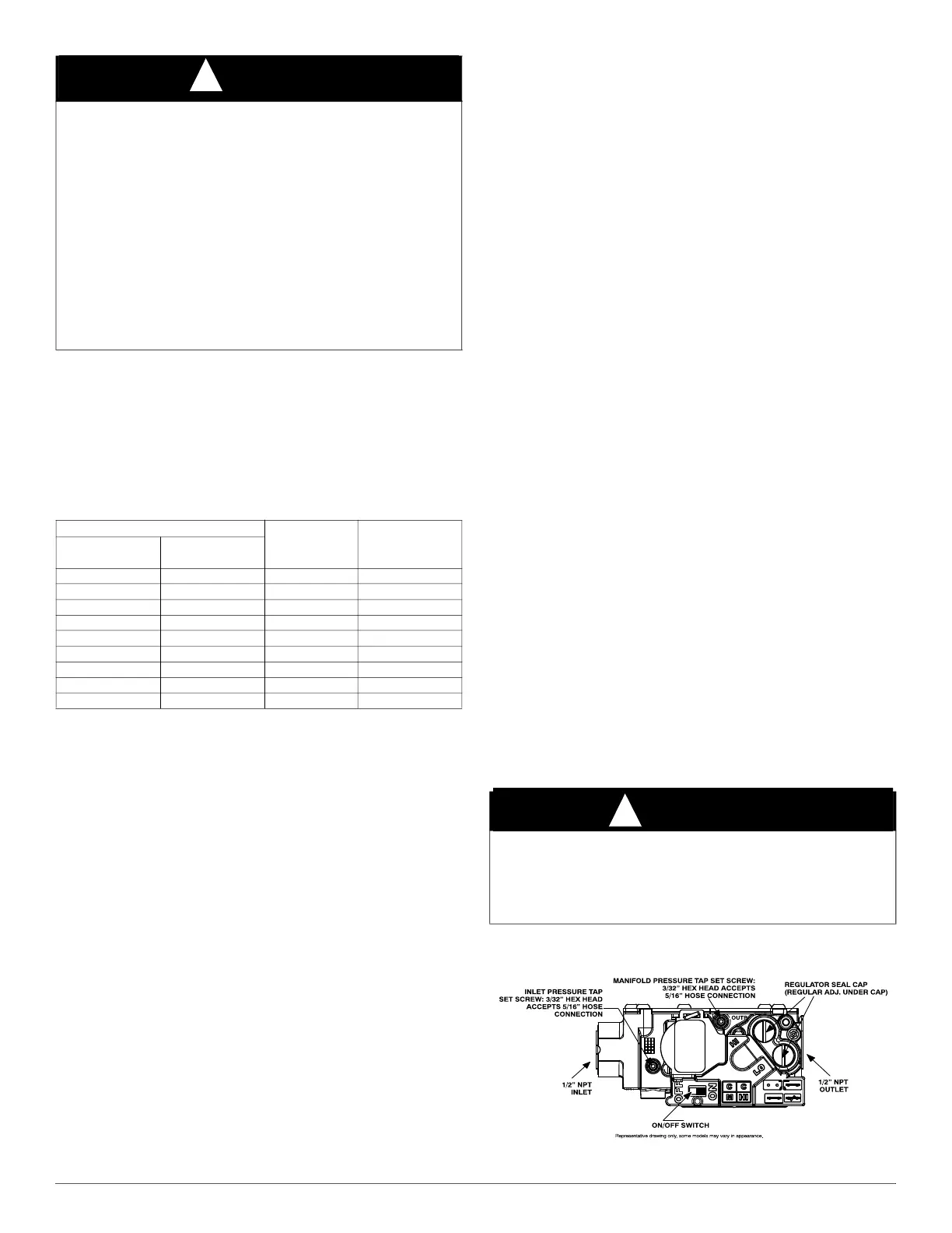 NOTE: To convert gas manifold Table pressures to Pascals, multiply