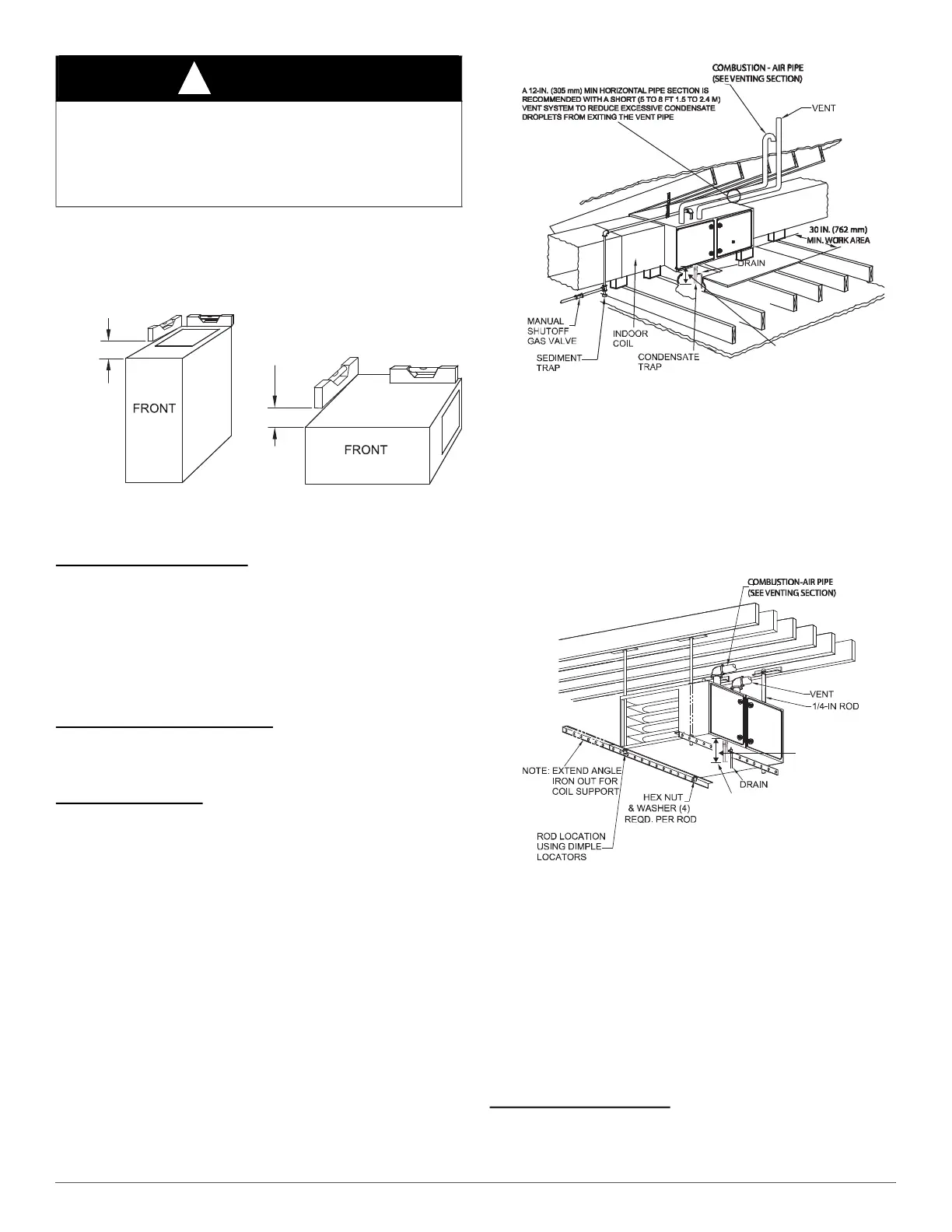 NOTE: Local codes may require a drain pan and condensate trap when a