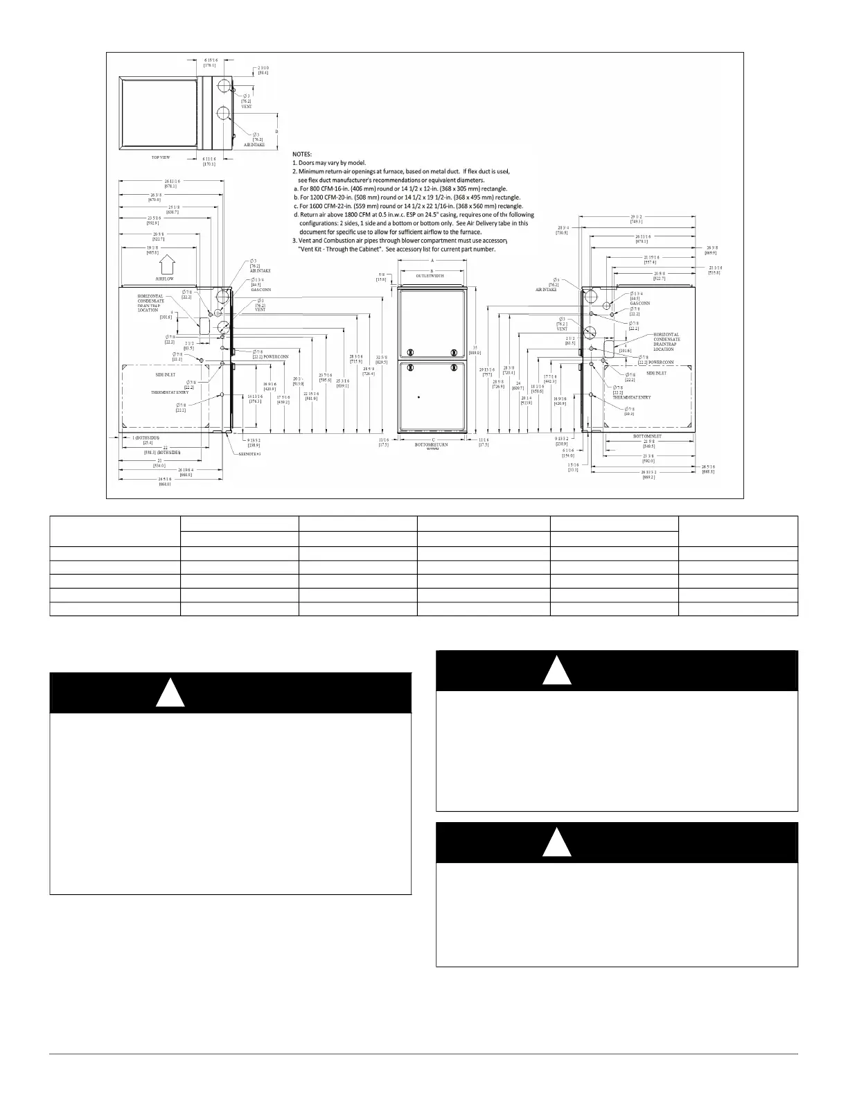 CABINET WIDTH OUTLET WIDTH BOTTOM INLET WIDTH AIR INTAKE