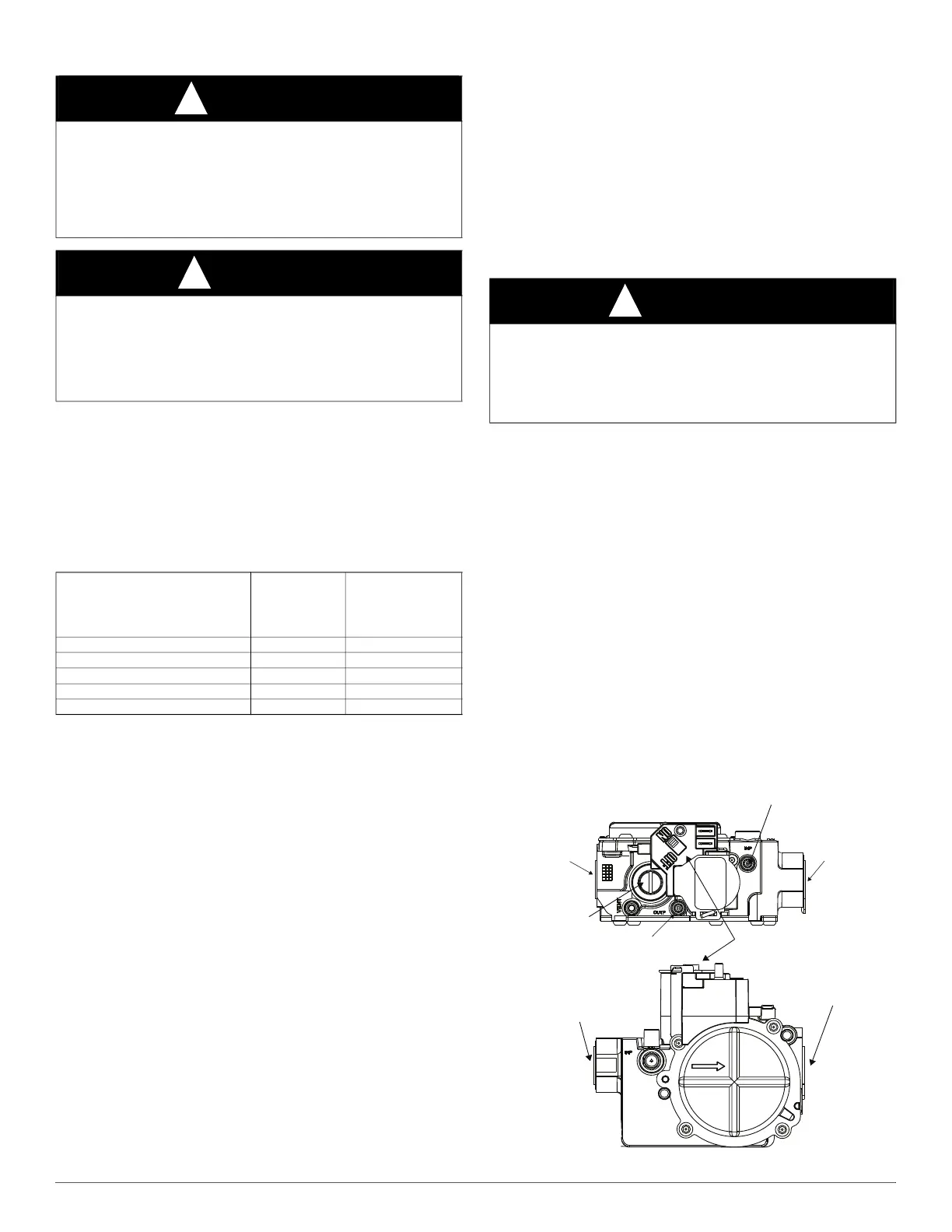 DO NOT bottom out gas valve regulator adjusting screw. This can