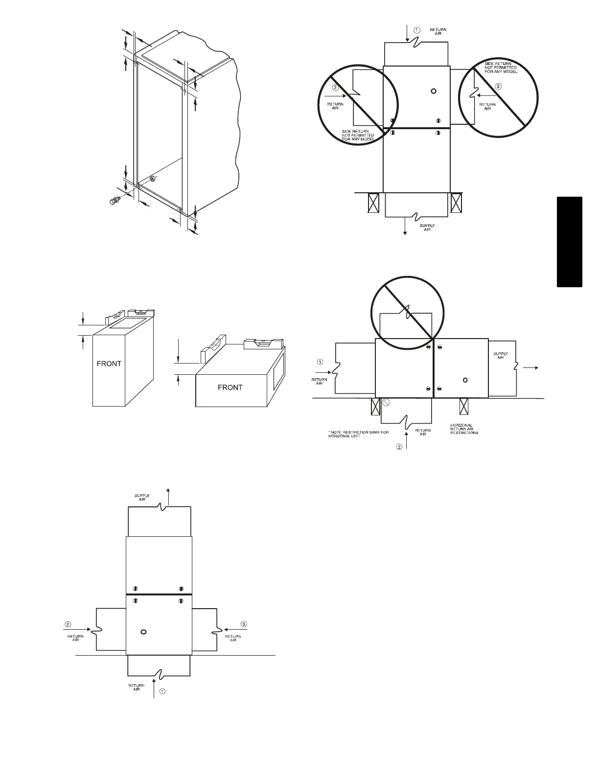 Fig. 26 − Upflow Return Air Configurations and Restrictions