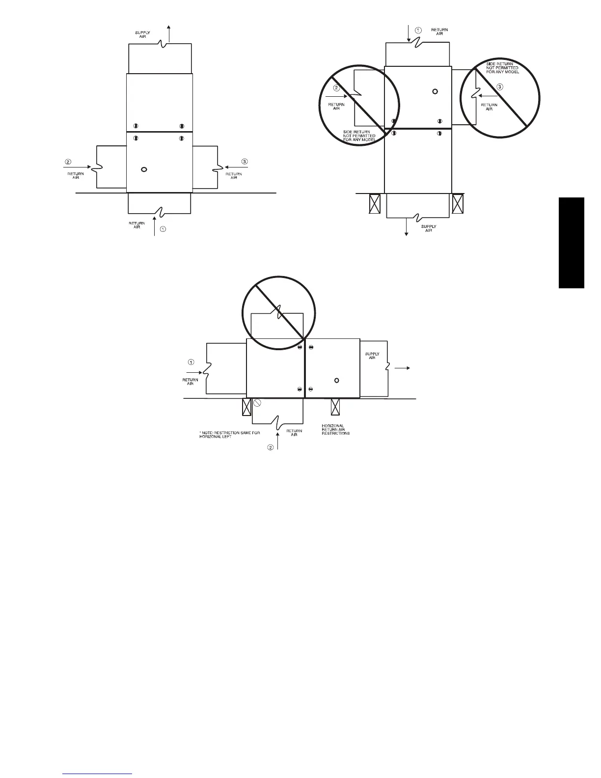 Fig. 23 -- Upflow Return Air Configurations and Restrictions