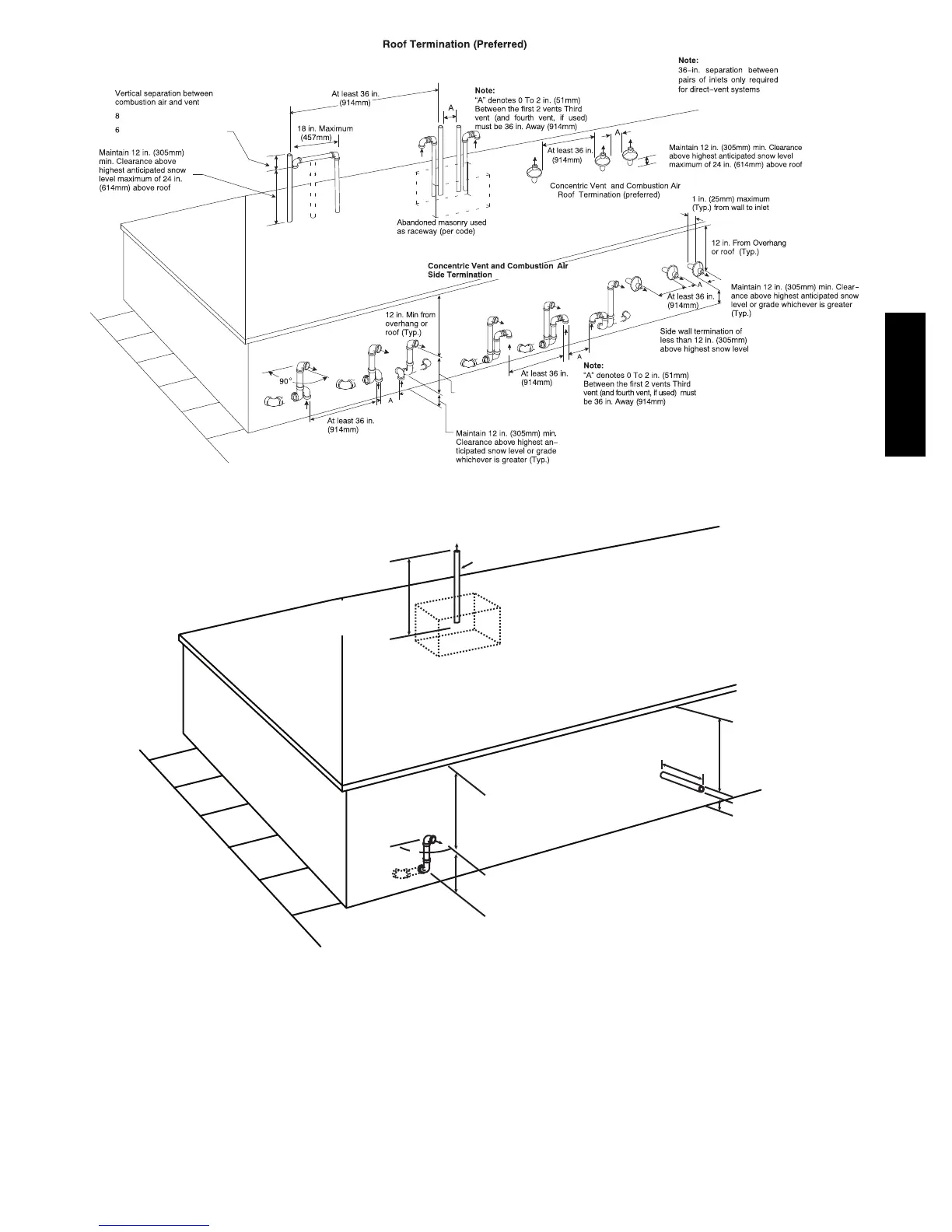 Fig. 47 -- Combustion Air and Vent Pipe Termination for Direct Vent (2--Pipe) System