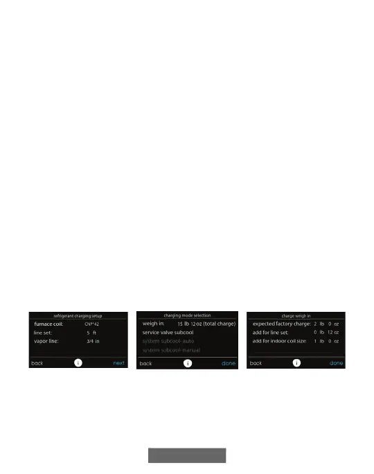 Next, the installer will enter the SERVICE VALVE SUBCOOL screen.
