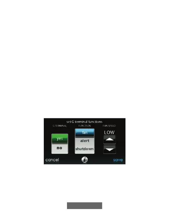 on fan to selected fan speed when G terminal is energized. Use the alert
