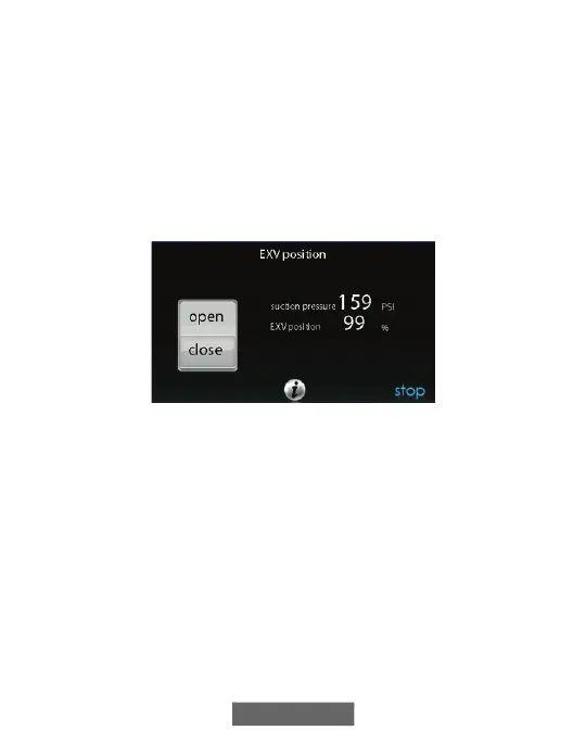 This screen allows the installer to set the EXV position and monitor the