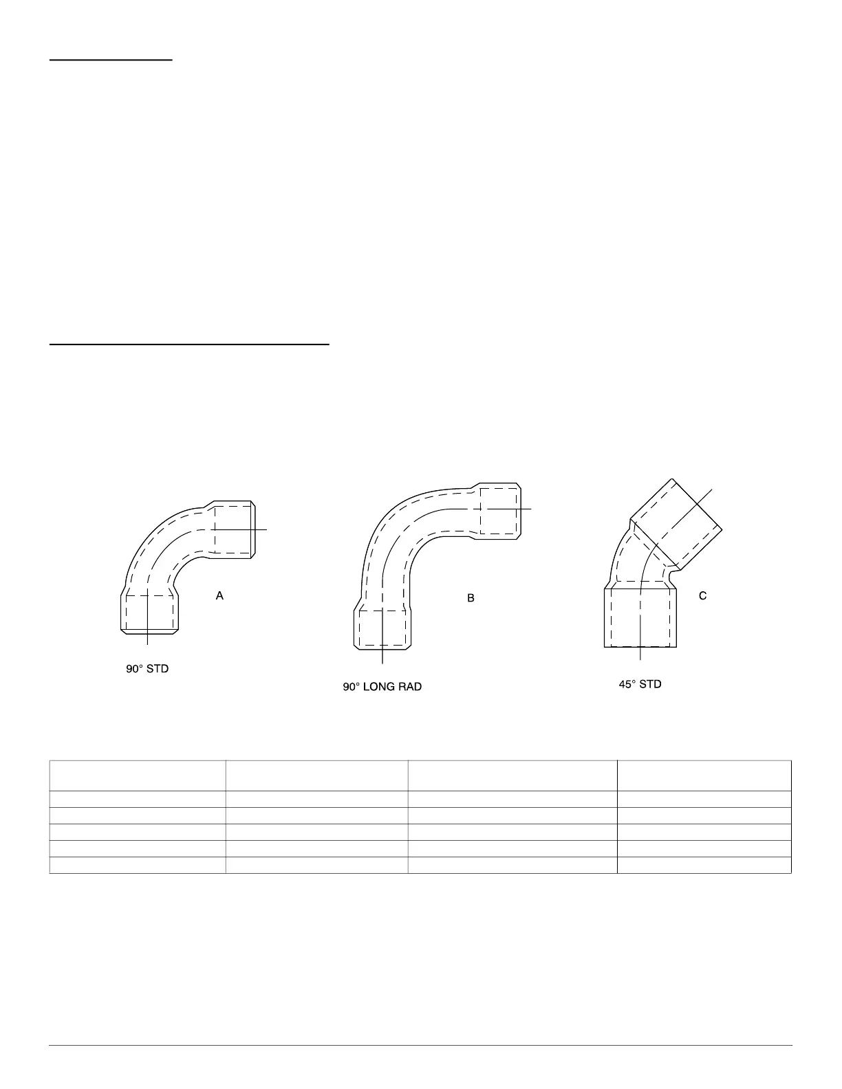 90° STD (A) 90° LONG RAD (B) 45° STD (C)