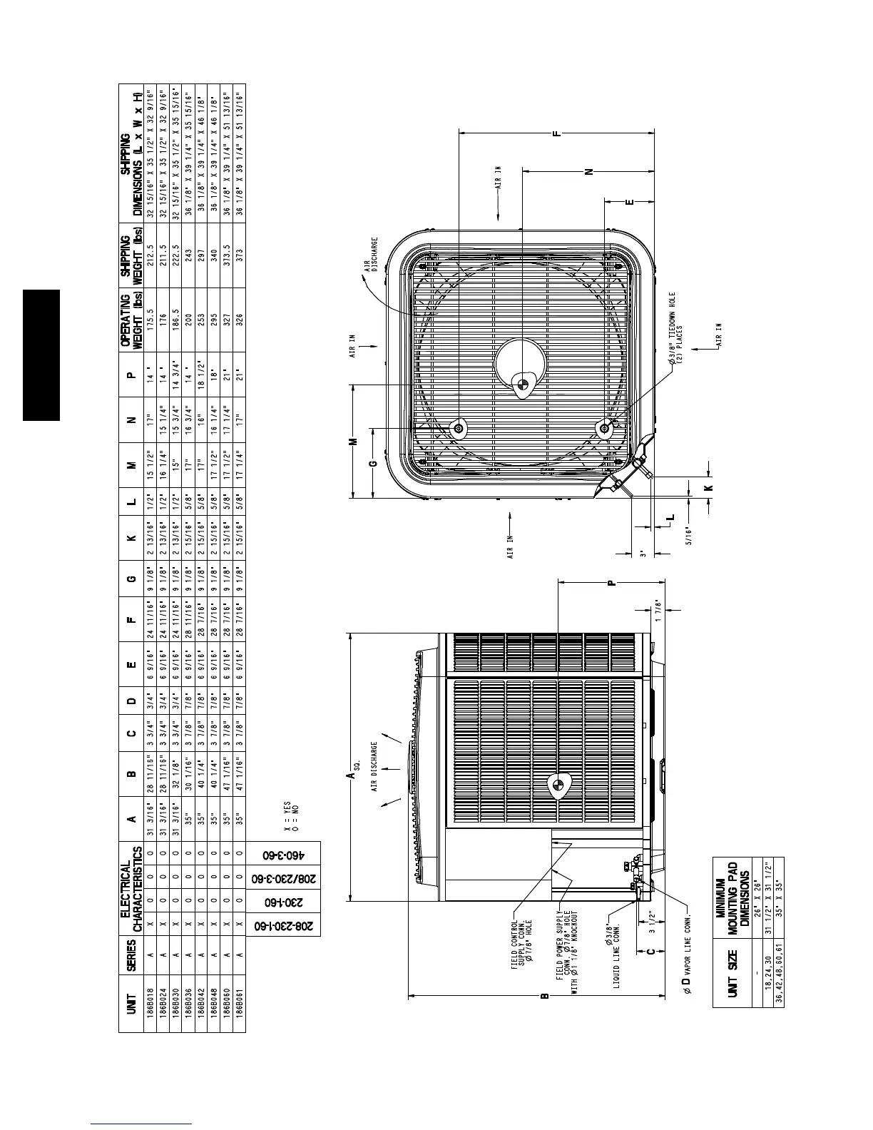 AND 24" BETWEEN UNITS FOR PROPER AIRFLOW.
