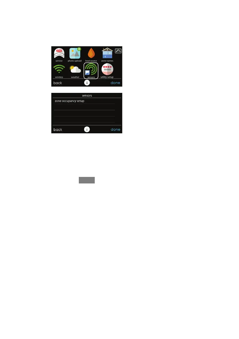 selecting the SENSORS icon in the menu, a menu will be shown that offers options
