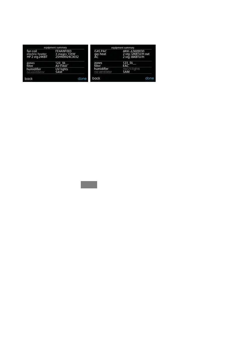 Touch EQUIPMENT SUMMARY to show indoor unit type and model number,