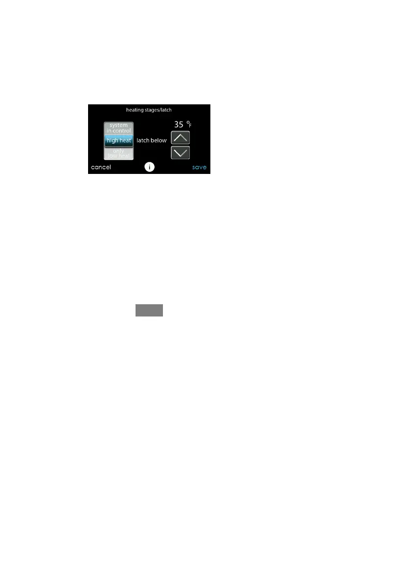 d Temperature below which only the high stage of heating will be energized.
