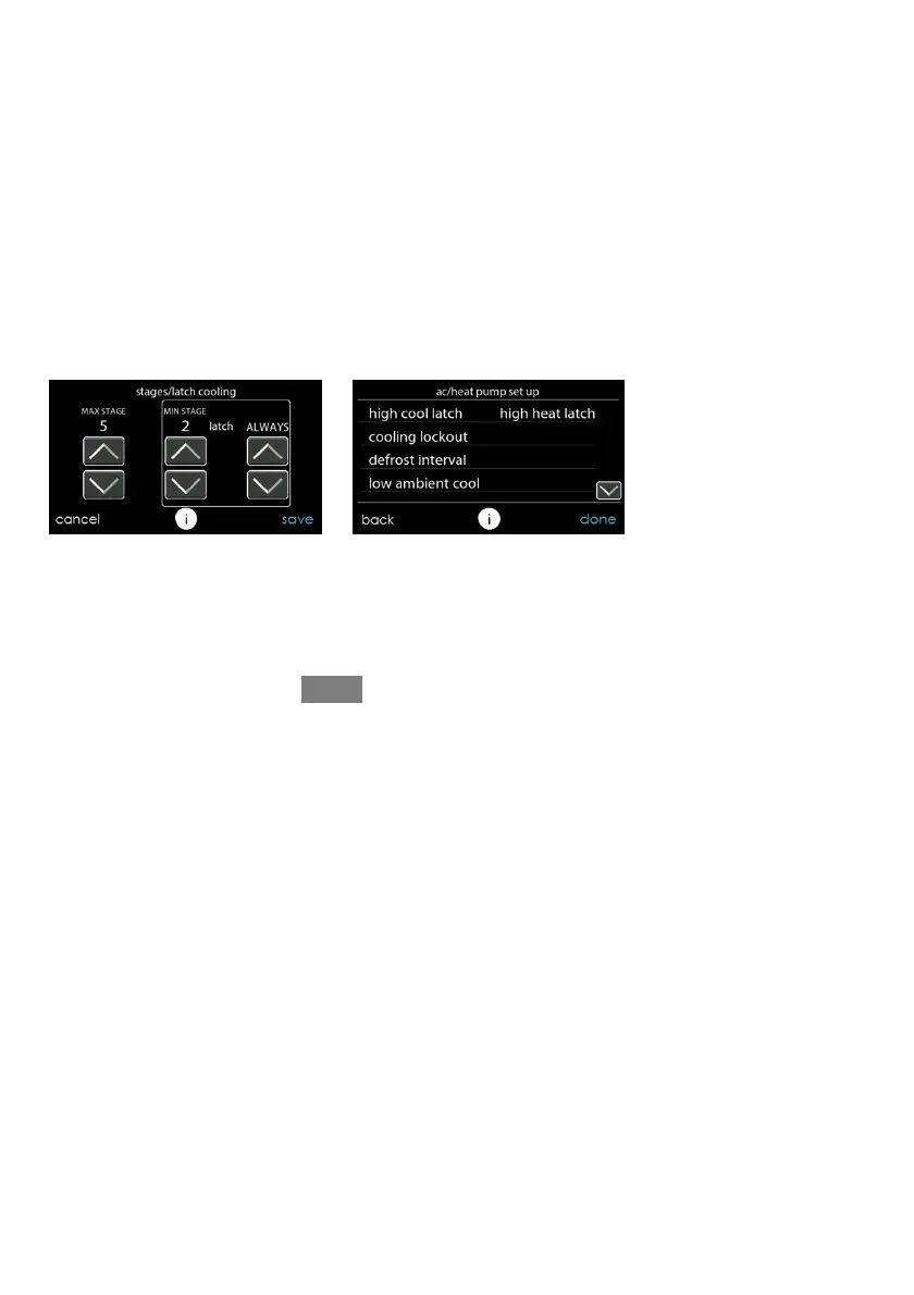 For 18VS heat pumps, the cooling and heating stage/latch can be changed. Select