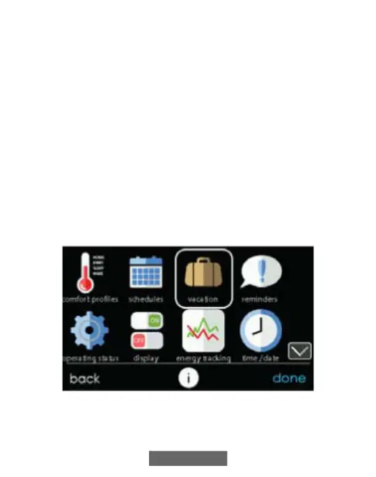 Touch the VACATION icon in order to set a prolonged vacation