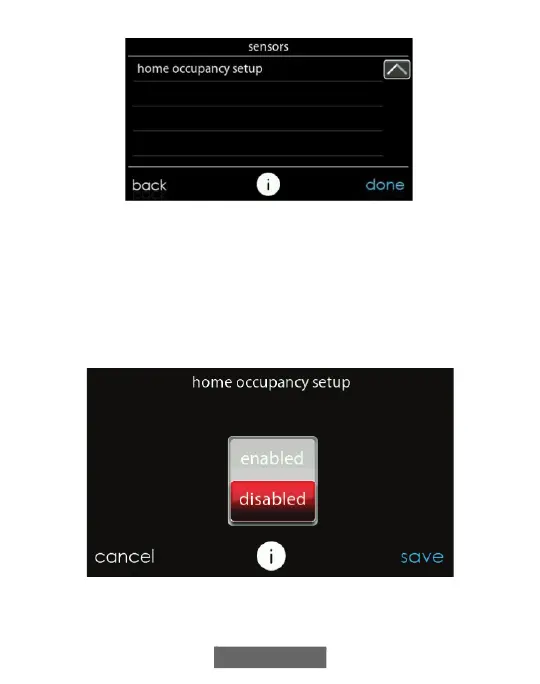 Home or zone (for zoning systems) occupancy setup is used to enable or