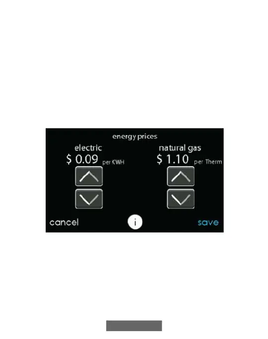 • Touch ENTER ENERGY PRICES to enter the current electric and