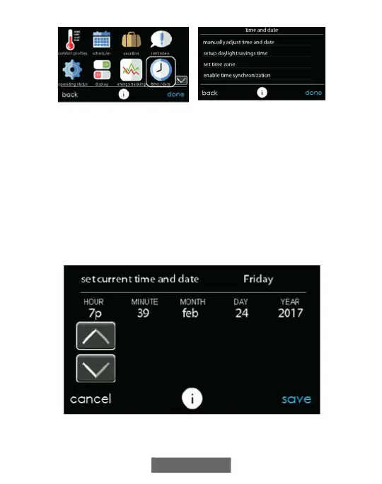 Select manually adjust time and date and follow these steps: