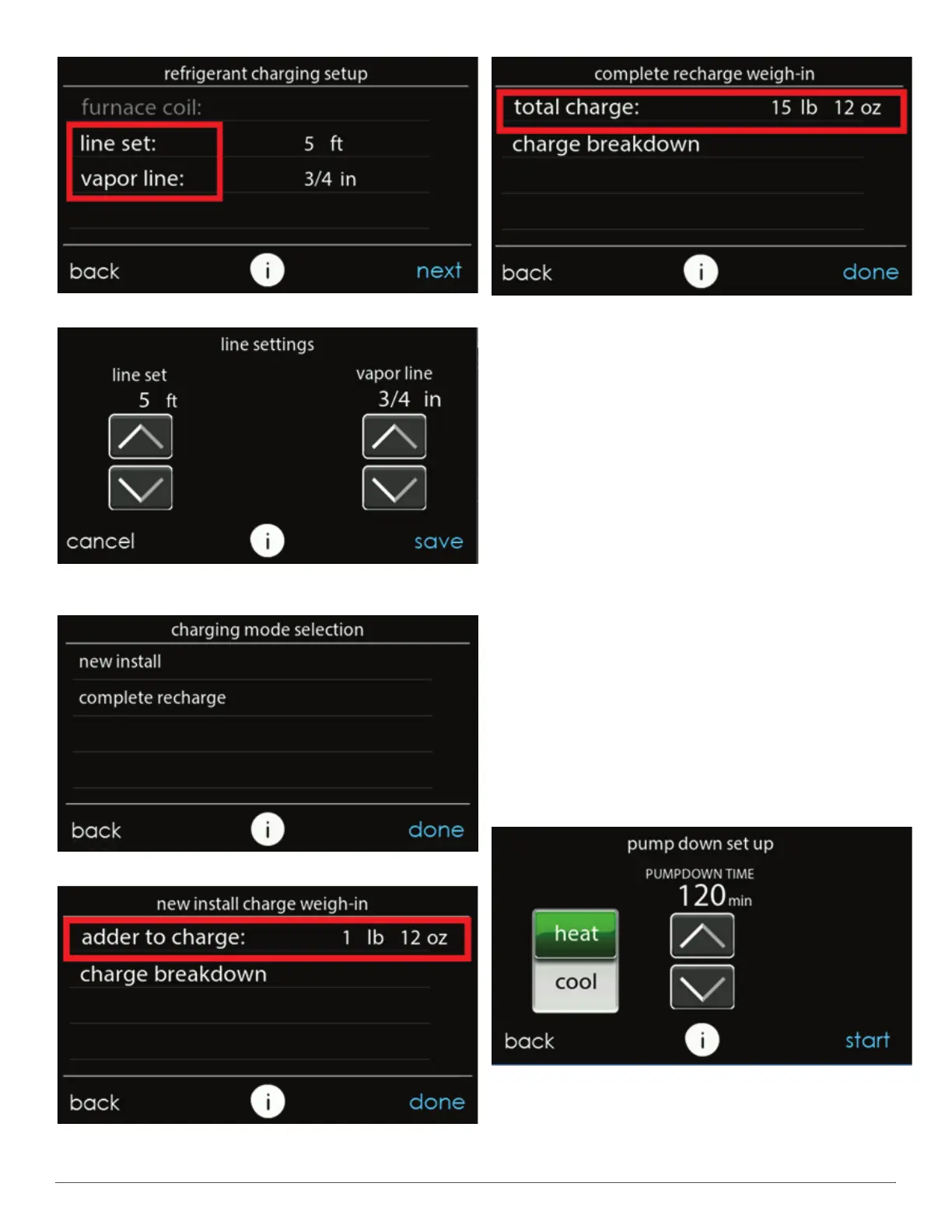 "refrigerant charging" and then "pump down" (see Fig. 10 &