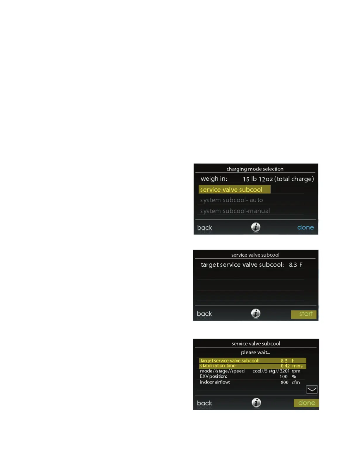 once conditions are within range, the ”Service Valve Subcool”
